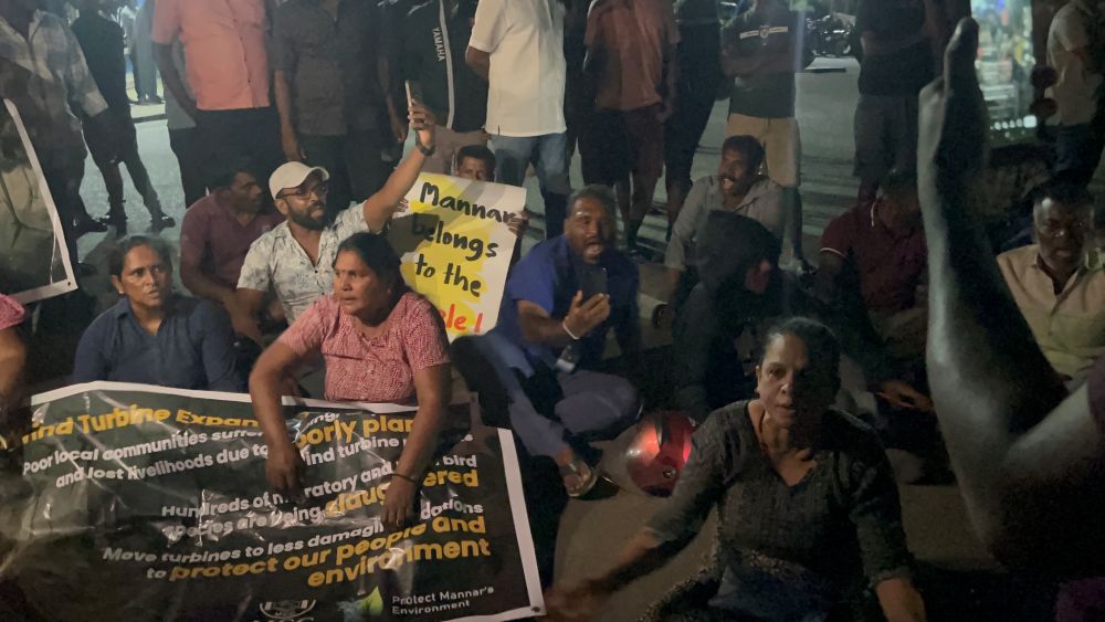 ඊයේ  (26) රාත්‍රිෙය්දී මන්නාරමේ සුළං ටර්බයින කුළුණක් ඉදිකිරීම සඳහා අවශ්‍ය ද්‍රව්‍ය පොලිස් ආරක්ෂාව මධ්‍යයේ මන්නාරම දෙසට ප්‍රවාහනය කරමින් සිටියදී ජනතාව විසින් ඊට විරෝධය දැක්වූ අවස්ථාවේදී උණුසුම් තත්වයක් ඇතිවී තිබේ. මෙම තත්වය තුළ, සිය ගණනක් ජනයා එක්රැස් වූ අතර කතෝලික පියතුමන්ලාද ජනතාව සමග එක්වි  මන්නාරම පිවිසුමේදී විරෝධතාවක් පවත්වන ලදී.