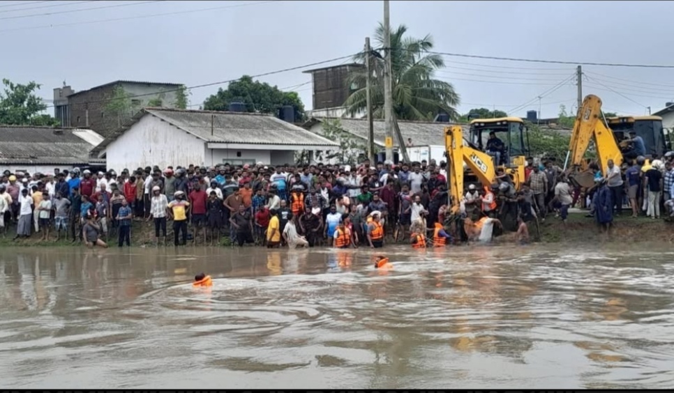 ආපදා කළමනාකරණයට සම්බන්ධ කණ්ඩායමක් සහ සයින්දමරුදු ප්‍රාදේශීය ලේකම් කාර්යාල ආපදා කාර්ය සාධක බලකා පොලිසිය විසින් සිදු කරන ලද ගලවා ගැනීමේ මෙහෙයුමේදී, ඇළට වැටුණු මෝටර් රථය සොයා ගන්නා ලදී.